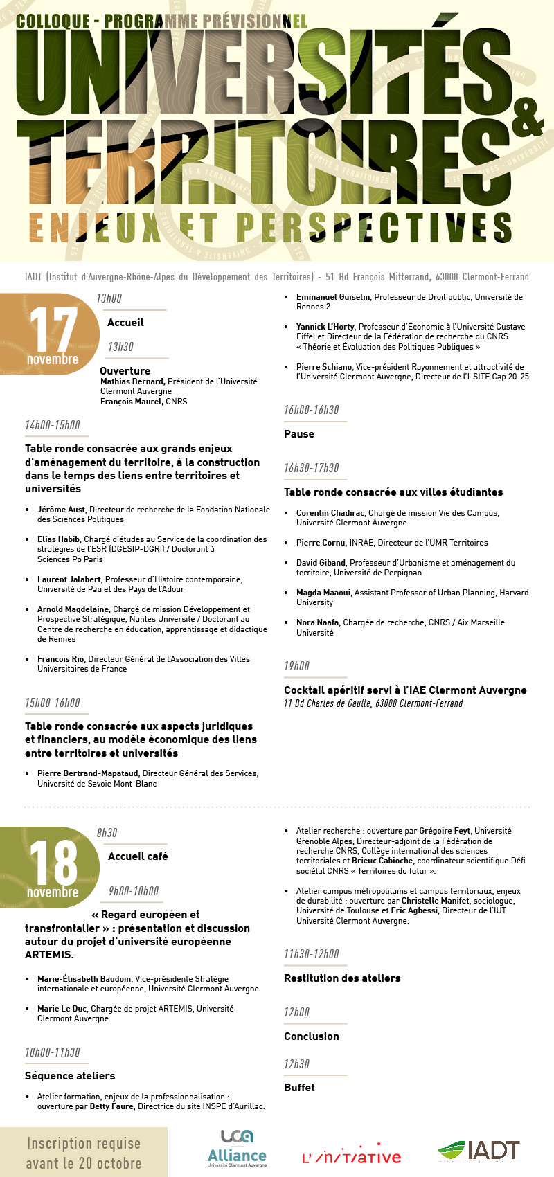 Les informations recueillies sur ce formulaire sont enregistrées dans un fichier informatisé par l'Université Clermont Auvergne pour l'organisation de l'événement "Universités et Territoires de l'Université Clermont Auvergne". La base légale du traitement est nécessaire à la mission de service publique relative à l’enseignement supérieur tel que décrite à l’article 6 – 1 – e) du règlement général sur la protection des données (RGPD)