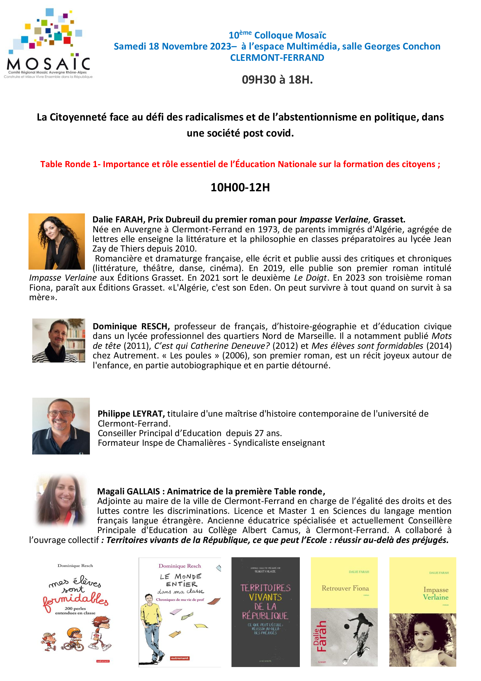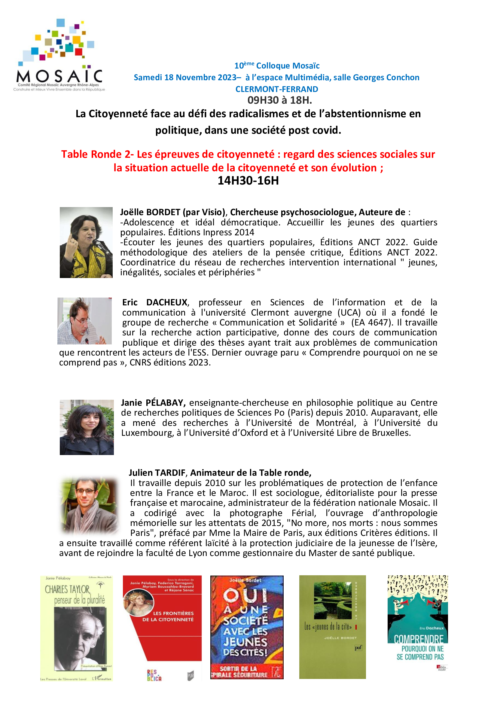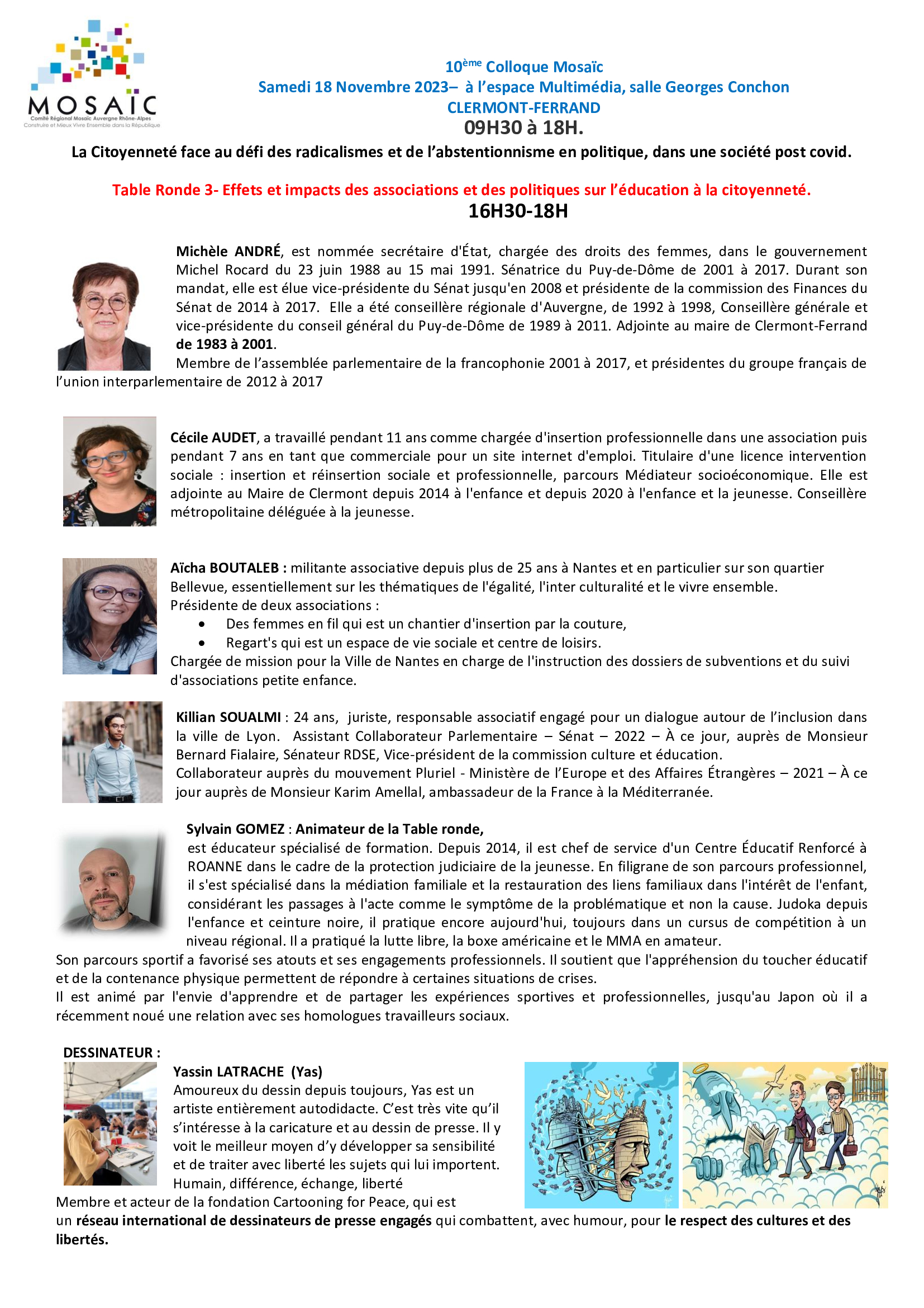 10ème colloque Mosa?c, avec tables rondes et intervenants, sur le thème de la citoyenneté face au défi des radicalismes et de l’abstentionnisme en politique dans une société post covid, ,