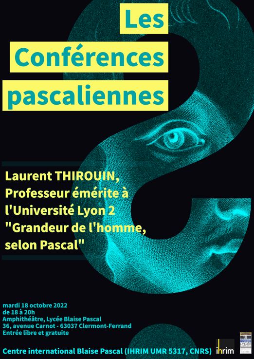 Ce mardi 18 octobre 2022, le Centre International Blaise Pascal de l’Université Clermont Auvergne, en partenariat avec le lycée Blaise Pascal, inaugure le cycle des ? conférences Pascaliennes ? dédiées à l’?uvre et à la pensée de Blaise Pascal.