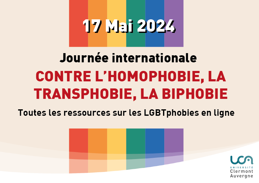 Cette journée est l’occasion de rappeler les valeurs de solidarité, d’égalité et de respect à l’Université Clermont Auvergne, pour toutes et tous, quels que soient le genre et l’orientation sexuelle. L’université s’engage dans la lutte contre les discriminations avec des événements toute l’année et des actions de sensibilisation, pour une meilleure connaissance des enjeux et pour agir contre les violences.