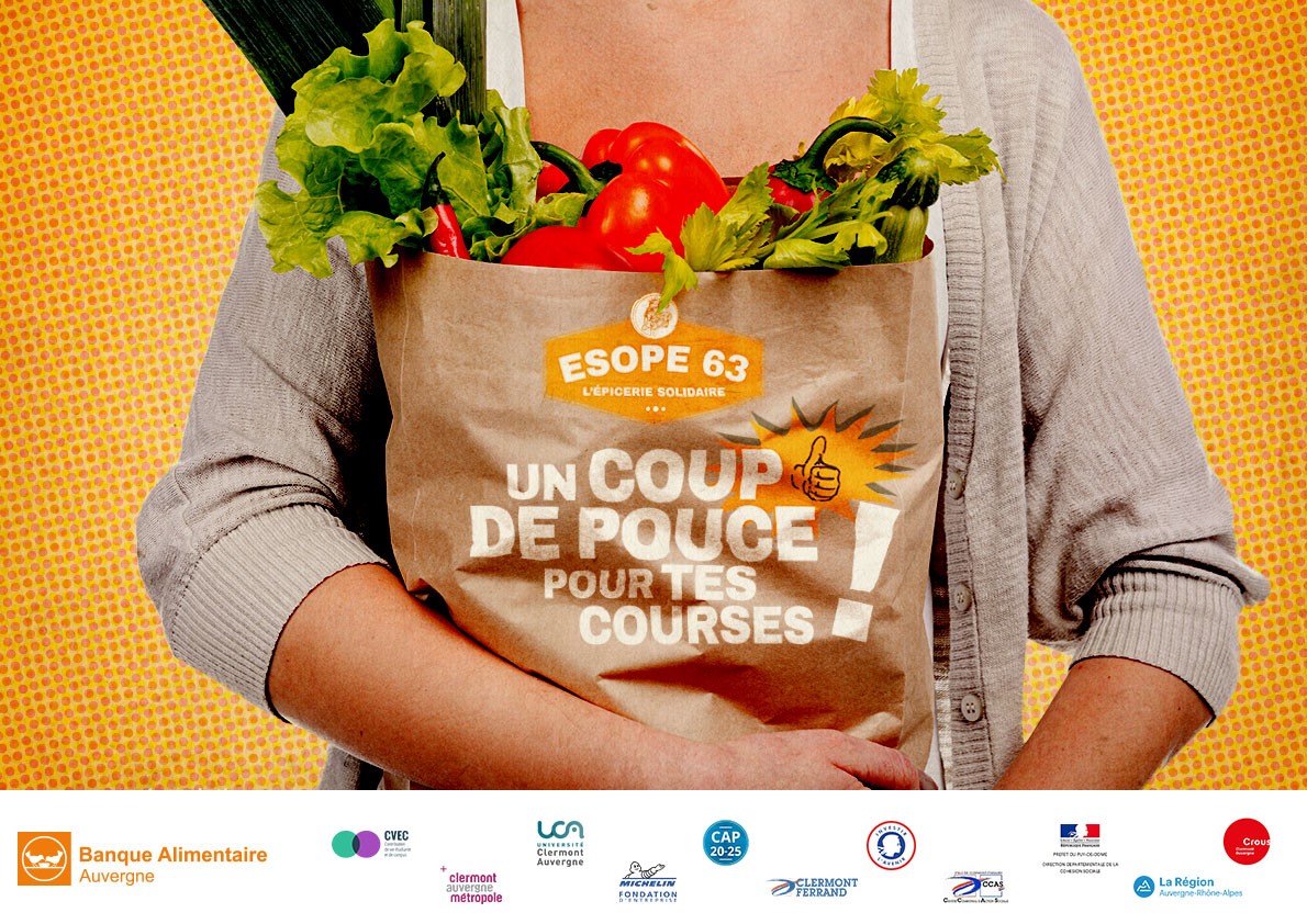 En mars 2018, la Banque Alimentaire Auvergne a ouvert ESOPE 63, une ¨¦picerie solidaire destin¨¦e aux ¨¦tudiants, aux apprentis et aux jeunes envoy¨¦s par le CCAS de Clermont-Ferrand. L¡¯objectif de l¡¯¨¦picerie est d¡¯aider tous les jeunes en difficult¨¦ financi¨¨re ¨¤ s'alimenter convenablement et ¨¤ poursuivre leurs ¨¦tudes plus sereinement.