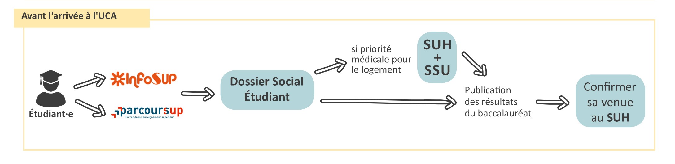 Il est fondamental, une fois que vous avez obtenu votre baccalauréat (ou tout autre dipl?me donnant accès aux études supérieures) que vous confirmiez votre venue. Toute demande d'aide ou d'accompagnement doit être adressée le plus t?t possible au SUH, de préférence avant votre inscription ou, à défaut, dès votre inscription à l'Université, et cela chaque année universitaire.