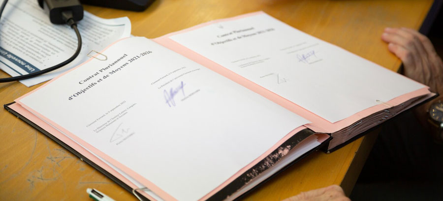 Son CPOM a été signé le 9 septembre dernier par Mathias BERNARD, Président de l’UCA, et Pierre MATHIEU, Directeur de l’Institut. Il structure le r?le que joue l'institut dans le déploiement du projet d'établissement 2021-2026 en poursuivant trois ensembles d'objectifs.