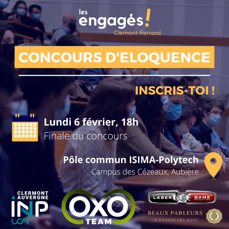 L'association "Les Engag¨¦s ! Clermont-Ferrand" organise cette ann¨¦e la deuxi¨¨me ¨¦dition de son concours d'¨¦loquence ¨¤ destination de tous les ¨¦tudiants de l'UCA !