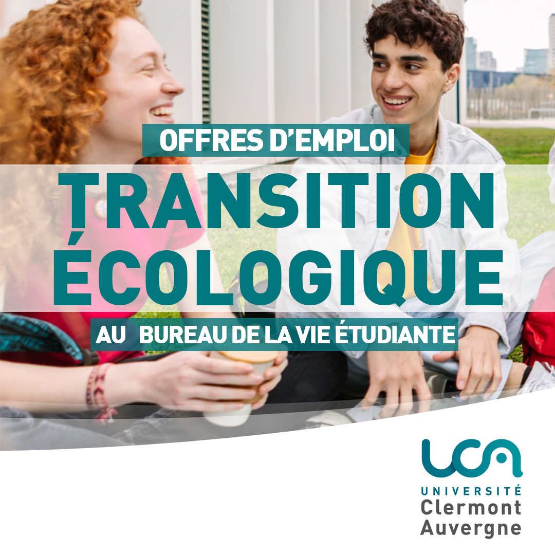 Rejoignez l'équipe du Bureau de la Vie ?tudiante dès le début de l'année 2024 et participez à la mobilisation étudiante pour la concertation de l'université Clermont Auvergne sur la transition écologique.
